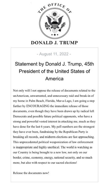 トランプさんからの声明文公開用(関係者宛)